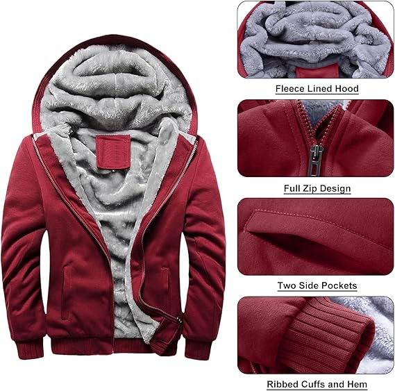 MANLUODANNI Homme Hiver Chaud Sweats Épaisse Veste à Capuche Doublée Polaire Manteaux Doux Hoodie Blousons Sweat-Shirts Manches Longues